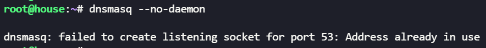 这是因为默 dnsmasq 是默认侦听所有 IP 地址的(即侦听 0.0.0.0),而当前 Ubuntu 系统有个默认的 DNS 缓存服务 systemd-resolved,其侦听了本机环回地址127.0.0.53:53,可以考虑关掉 systemd-resolved 或者指定接口或地址进行侦听: