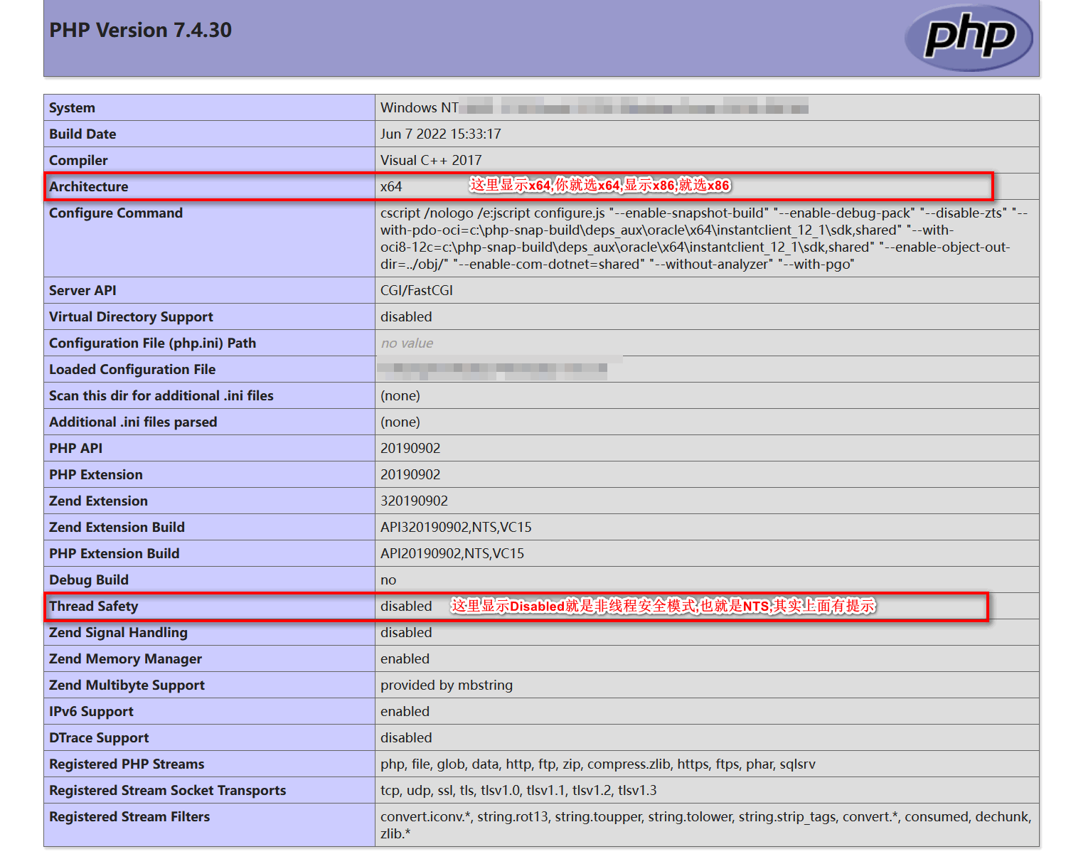 然后选择你所需要的版本,如果你是非线程安全就选NTS如果是启用了线程安全就选TS,具体这个怎么看..还有到底是x86还是x64嘛..你新建一个info.php文件然后内容如下: