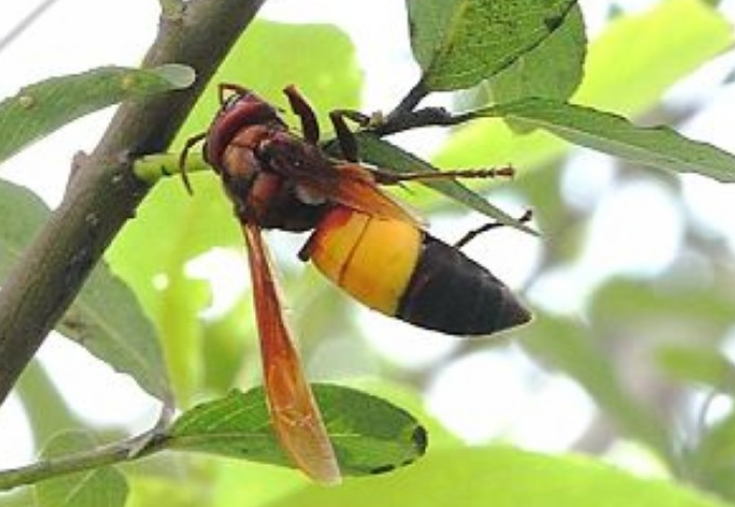 黄腰胡蜂:腹部第1~2节背板为黄橙色,其余均为黑色。